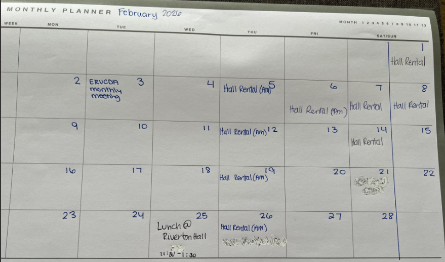 RIVERTON HALL RENTAL AVAILABILITIES (Click on each month):